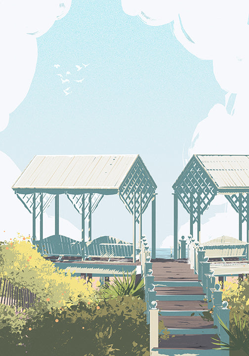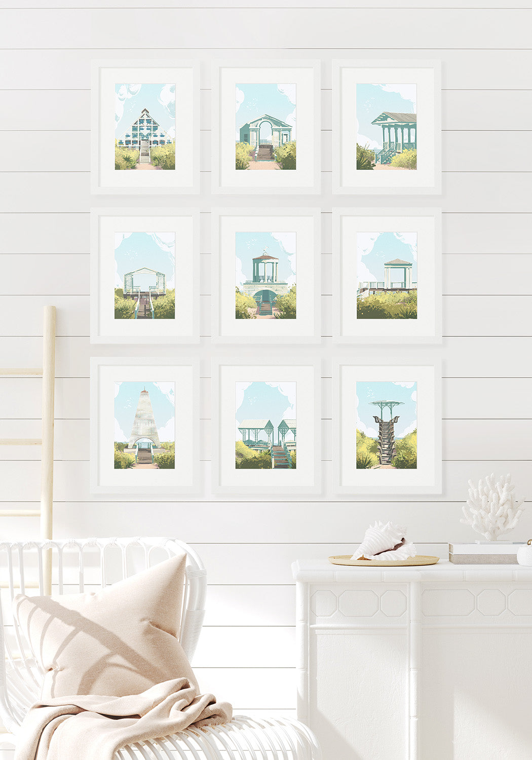 Each painting is printed on archival quality paper with a silk surface finish. It is then secured in a heavyweight, bevel cut mat made of professional archival board.